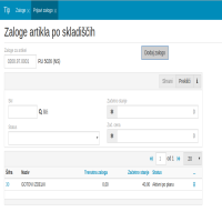 Določen artikel imamo lahko seveda na več skladiščih. Vsa artiklova začetna stanja so našteta v seznamu. S klikom na status lahko spreminjamo status artikla na skladišču, s klikom na pa začetno stanje pobrišemo.