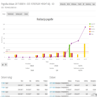 Ko je pogodba potrjena, se nam odpre t.i. nadzorna plošča pogodbe (1). Na zavihku ’Stanje’ grafično in numerično spremljamo realizacijo pogodbe. Vidimo lahko koliko produktov iz pogodbe smo že proizvedli, koliko je že dobavljenih, koliko izdelanih, koliko jih je v izdelavi, koliko je naročenih, po katerih delovnih nalogih se (ali se je) proizvaja, seznam dobav za pogodbo, odstotek realizacije pogodbe ipd.