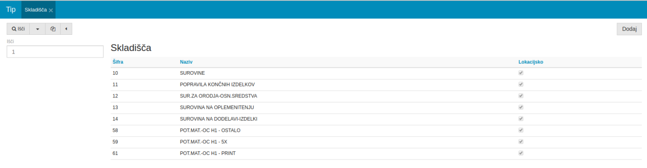 | Ima sledenje | Oznaka, da za zaloge tega skladišča uporabljamo sledenje - uporabljeno v Skladiščenju |